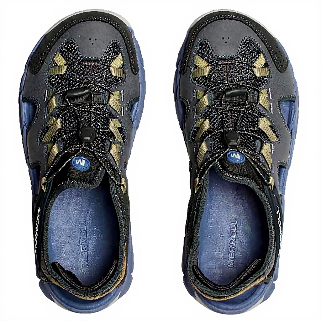 The Merrell J038027 generally runs true to size, but we recommend consulting the size chart as fit can vary slightly between different foot shapes. The elastic lacing system provides some flexibility in fit adjustment.
