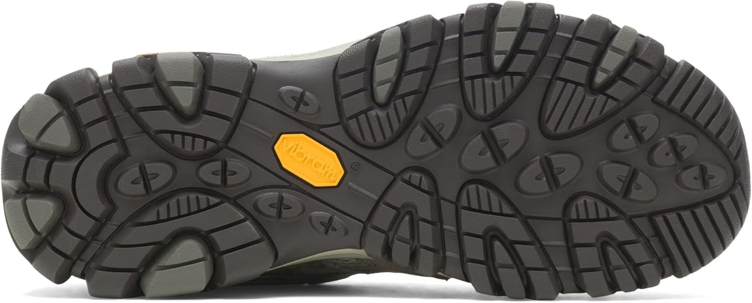 The Merrell Moab 3 GTX hiking shoes for women feature a waterproof Gore-Tex membrane that ensures breathability and protection from moisture. The upper combines durable pigskin leather and mesh for a lightweight yet robust construction. With recycled laces, webbing, and mesh lining, these shoes emphasize sustainability and comfort. A gusseted tongue prevents debris entry, while the protective toe cap and Vibram TC5+ rubber sole deliver superior traction and durability on varied surfaces.