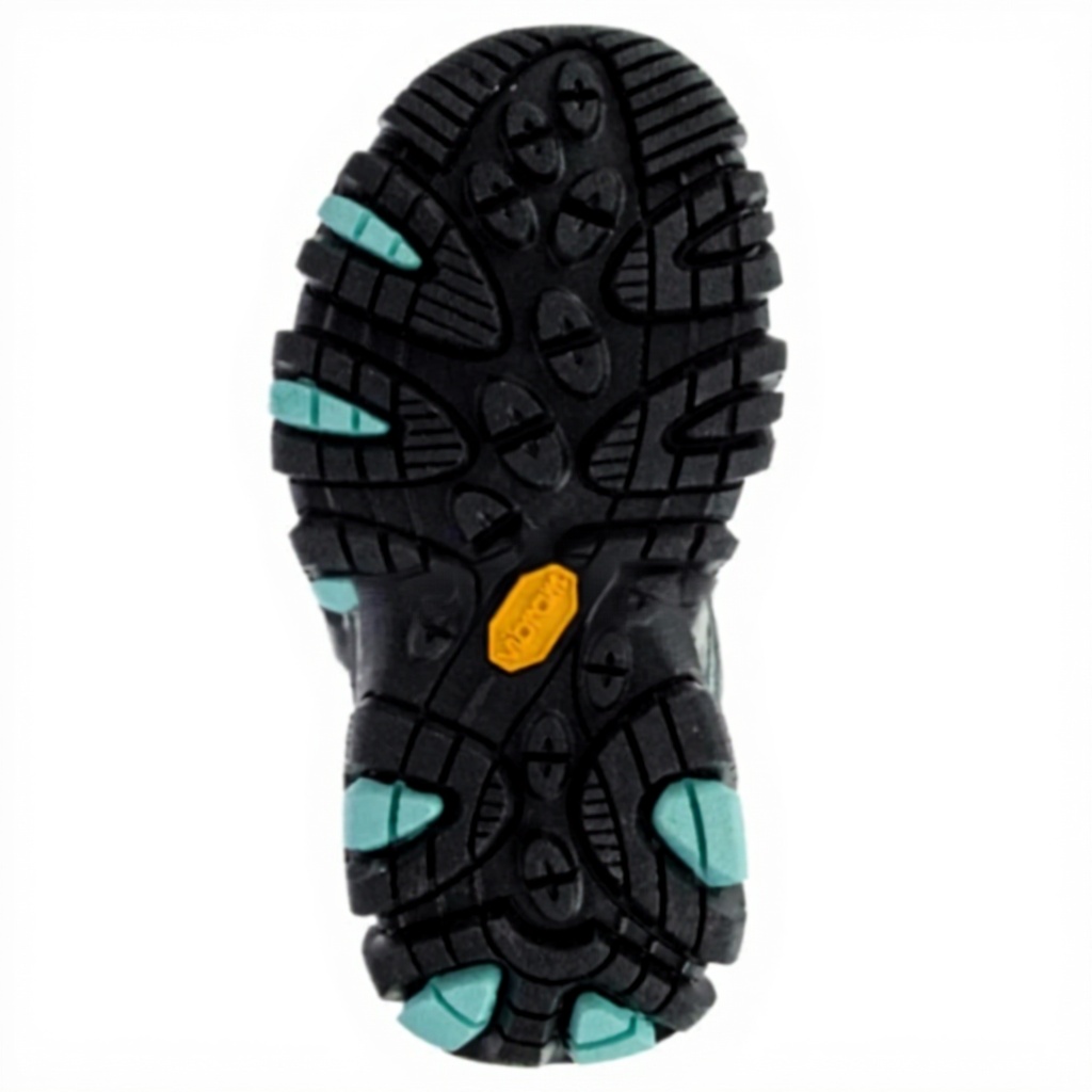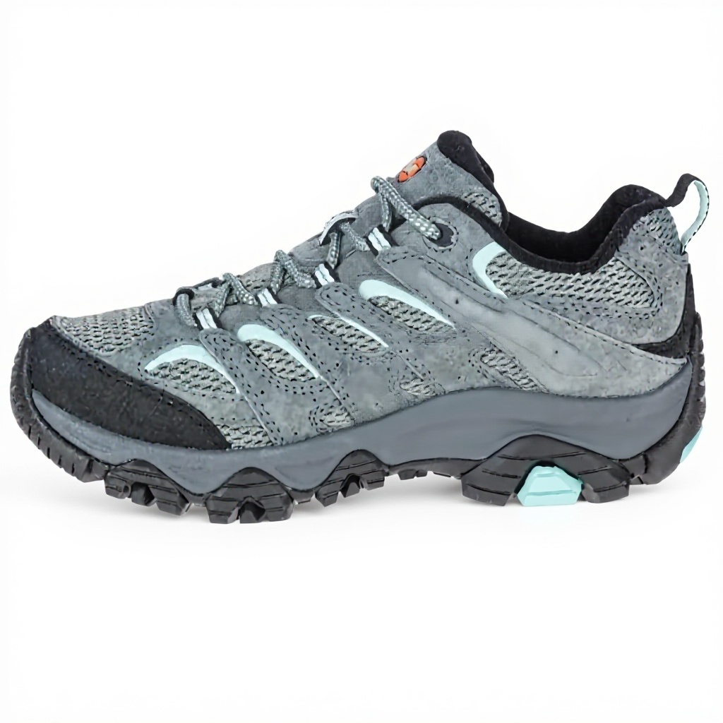 The Merrell Moab 3 GTX hiking shoes for women are engineered with a Gore-Tex waterproof membrane that ensures breathability and protection from moisture. The upper combines pigskin leather and mesh for durability and comfort, while recycled laces, webbing, and mesh lining support sustainability. A gusseted tongue prevents debris entry, and the Vibram TC5+ rubber outsole delivers superior traction on varied terrains.