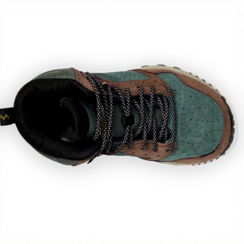 - Traditional lace-up system with protective tongue prevents debris entry